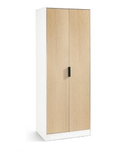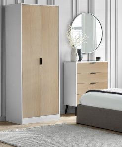 The Alba 2 Door Wardrobe in White and Oak introduces a fresh, modern style to your bedroom storage. Its sleek white finish pairs beautifully with warm oak accents, creating a balanced and contemporary look that fits effortlessly into any modern interior. Behind the two spacious doors, you’ll discover generous hanging space and shelves, providing ample room to keep your clothes neatly organised. Enhanced by black handles, this wardrobe is a stylish and practical addition to your bedroom.