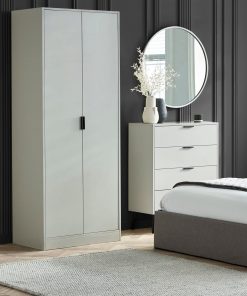 The Alba 2 Door Wardrobe in Silk Grey offers a sleek, contemporary storage solution for your bedroom. The soft grey finish exudes understated elegance, while the black handles provide a striking contrast for a modern, sophisticated look. Inside, the wardrobe offers ample space to keep your clothing and accessories organised, featuring a full-length hanging rail and spacious shelves.