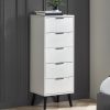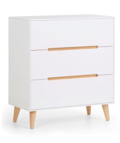 A stylish, retro-inspired chest with three large drawers in an immaculate matt white lacquered finish, with complementary tapered oak finish legs and recessed handles to provide easy opening. The sleek Scandinavian feel fits beautifully with any décor.