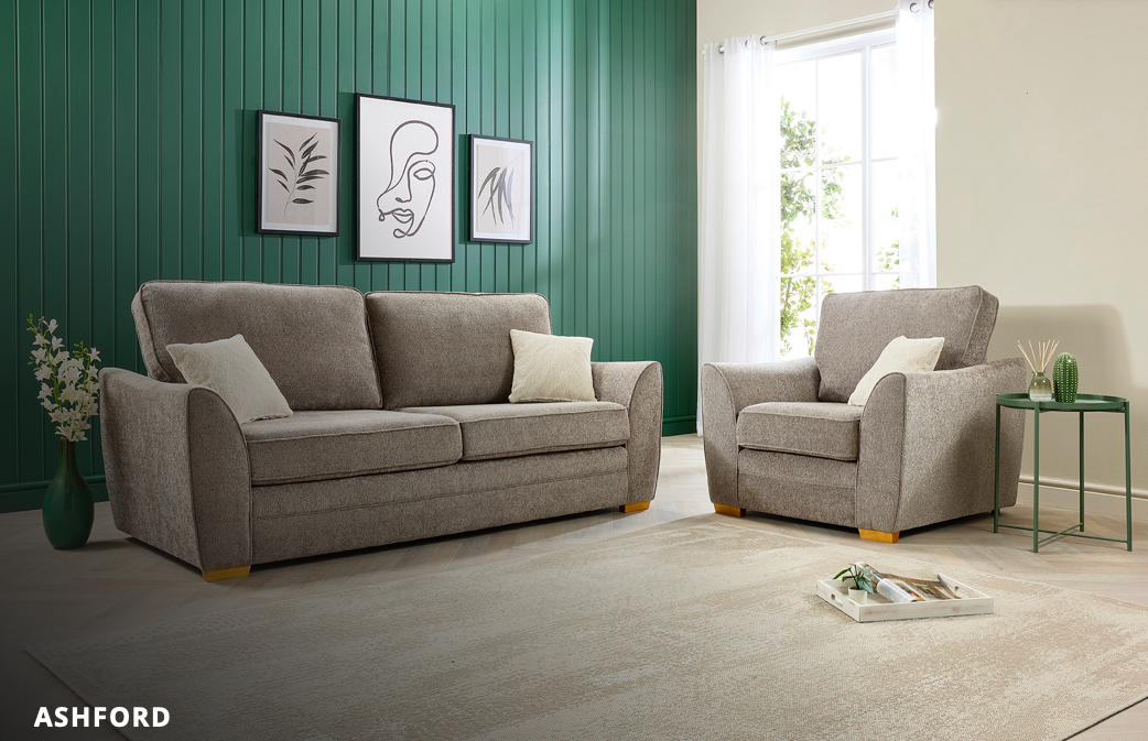The Ashford has all the style of a mid-century sofa range featuring a stylish teardrop arm, gently curving round the high backs and seat cushions, which all offer great levels of support and comfort, enabling the sitter to settle back and relax. The Ashford sits discretely upon a solid wooden foot, which comes in oak and mahogany effect to compliment any interior design scheme. The Ashford will make an attractive addition to any modern or traditional home.
