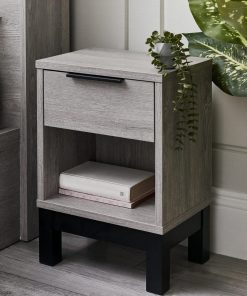 Using revolutionary click furniture technology, the Bali collection combines high quality style with simple assembly. With a modern grey oak finish and contrasting black legs and handles, the Bali collection creates a classic industrial look in your bedroom – leaving you with a high-quality interior, with low maintenance upkeep. This collection includes: 1 drawer bedside, 2 drawer bedside, 4 drawer chest, 6 drawer wide chest, dressing table/desk, wardrobe, and bookcase bed.
