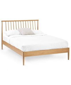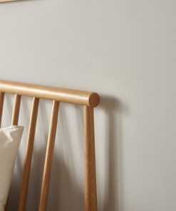 The gently slanted spindles give the headboard a light, airy feel, while the rich, solid oak frame adds warmth and character. Its minimalist design and tapered legs make it a versatile choice that suits both modern and classic interiors. The sturdy slatted base provides excellent mattress support, making this bed as practical as it is eye-catching. Minimal assembly required. Mattress sold separately.