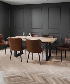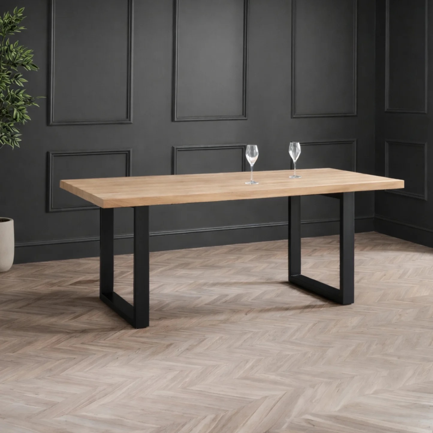 The Berwick dining table has been designed with a rustic oak top with emphasised natural wood grain. The industrial-style, black legs offer a stable structure that contrasts with the oak – providing a statement piece for your home.
