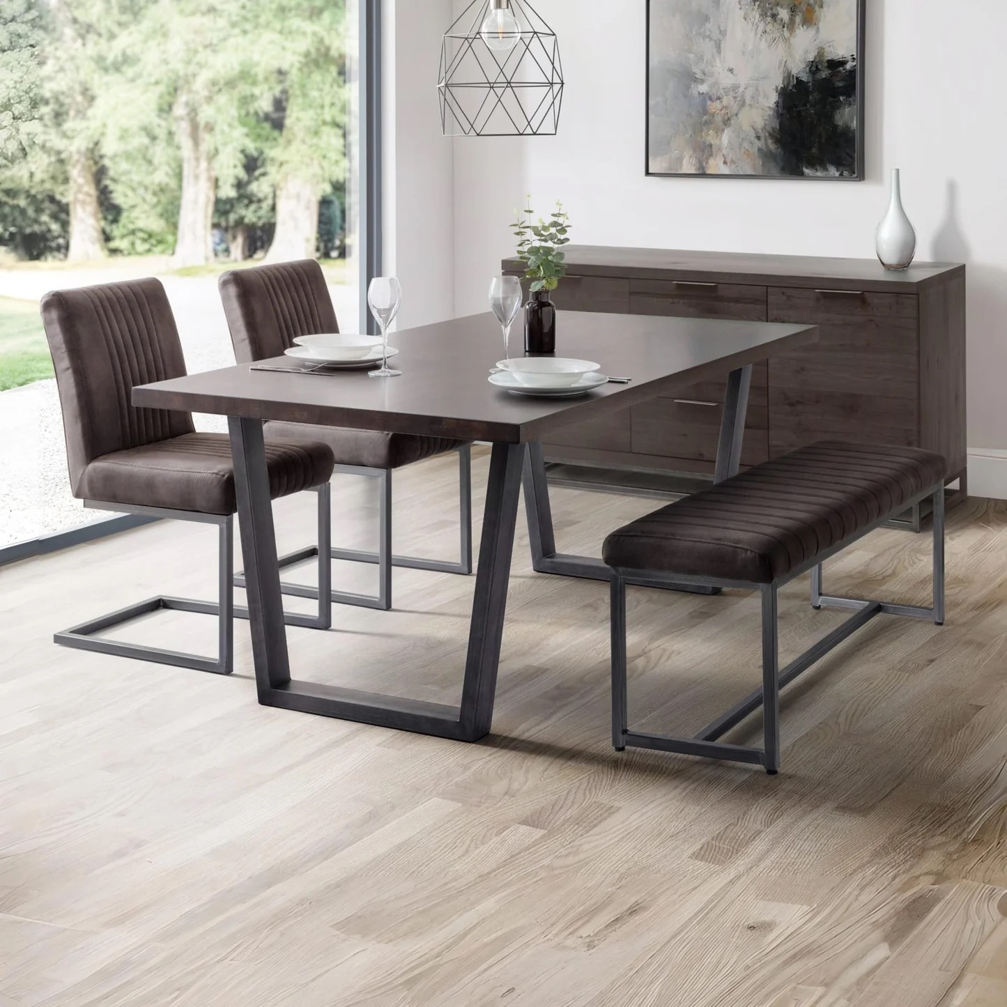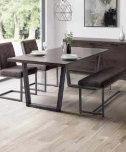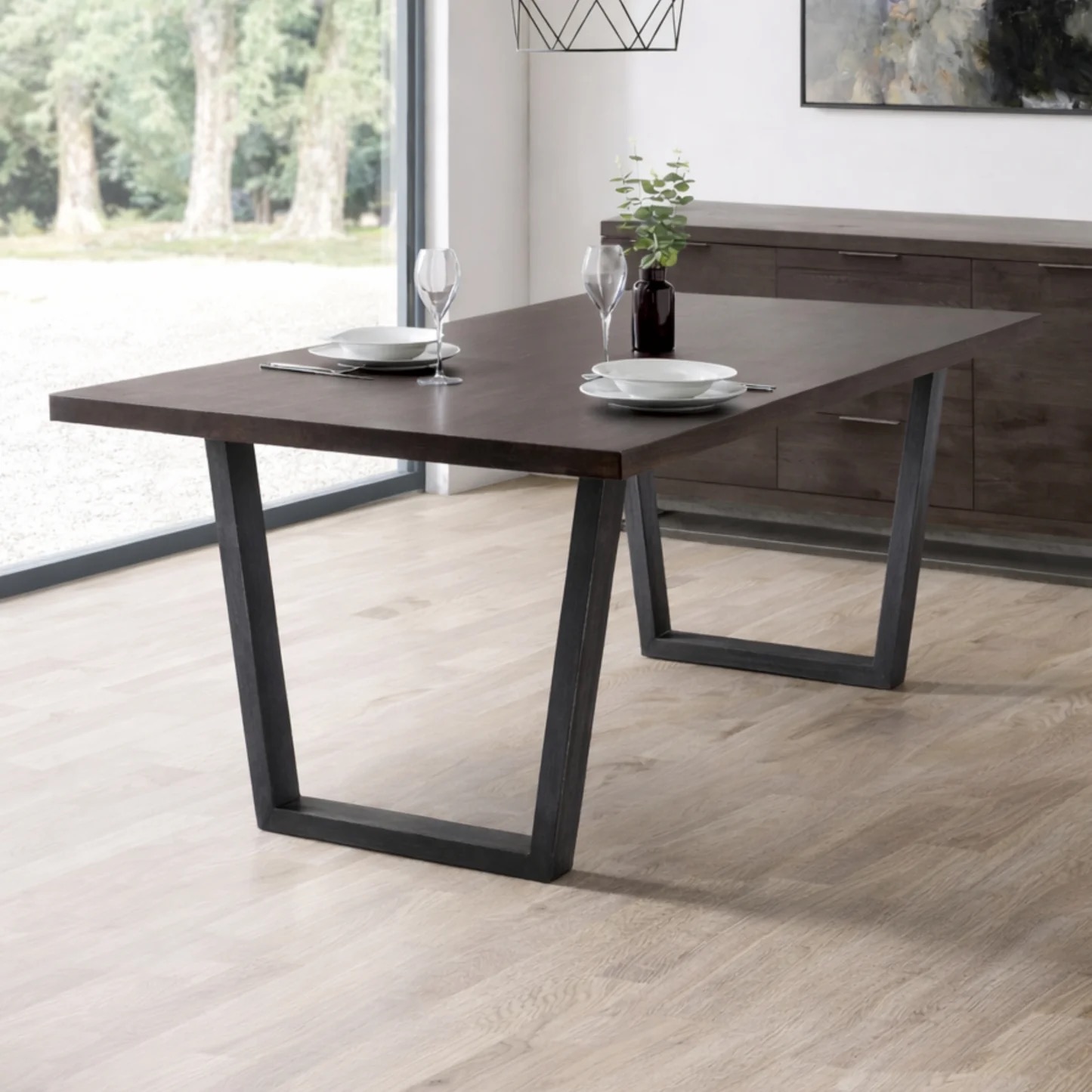 Made from solid oak, this dining table offers a rustic dark oak finish emphasising the stunning natural wood grain. The Brooklyn Dining Table offers a vintage edge featuring industrial trapeze style metal legs.