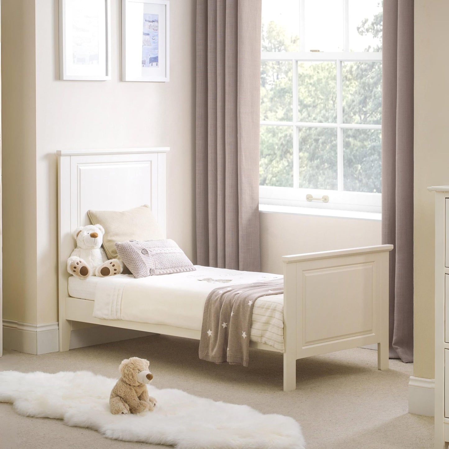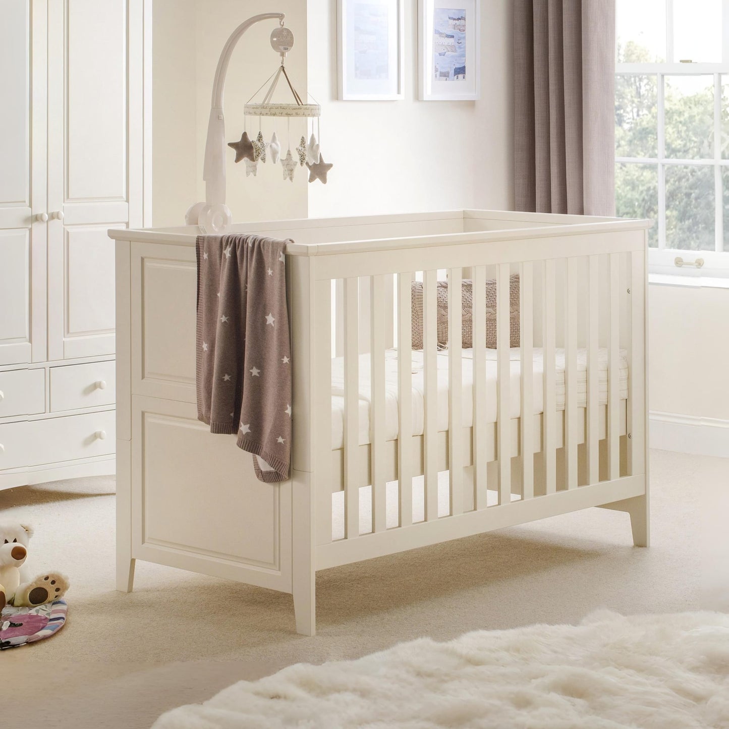 The Cameo Cot bed has a clean classic look to suit a wide variety of Nursery styles that can be easily converted to a Toddler bed when the time comes. The varying mattress heights allow easy access to lift your baby in and out of the cot, then lower them as they learn to sit and finally stand.