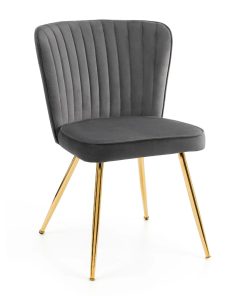 Offering graceful and modern luxe design, the Cannes chair would make a beautiful statement in your home. Smooth, high quality velvet combined with a scalloped back design and contrasting gold-coloured legs – this chair provides comfort, as well as class.
