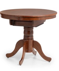This Canterbury table brings a touch of elegance to any room, with its stylish pedestal base. Finished in a mahogany colour, this Canterbury table offers space saving practicality, extending to an oval table with can fit six people with an easy-to-use butterfly mechanism.