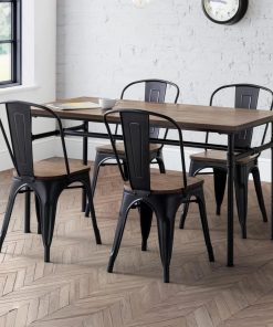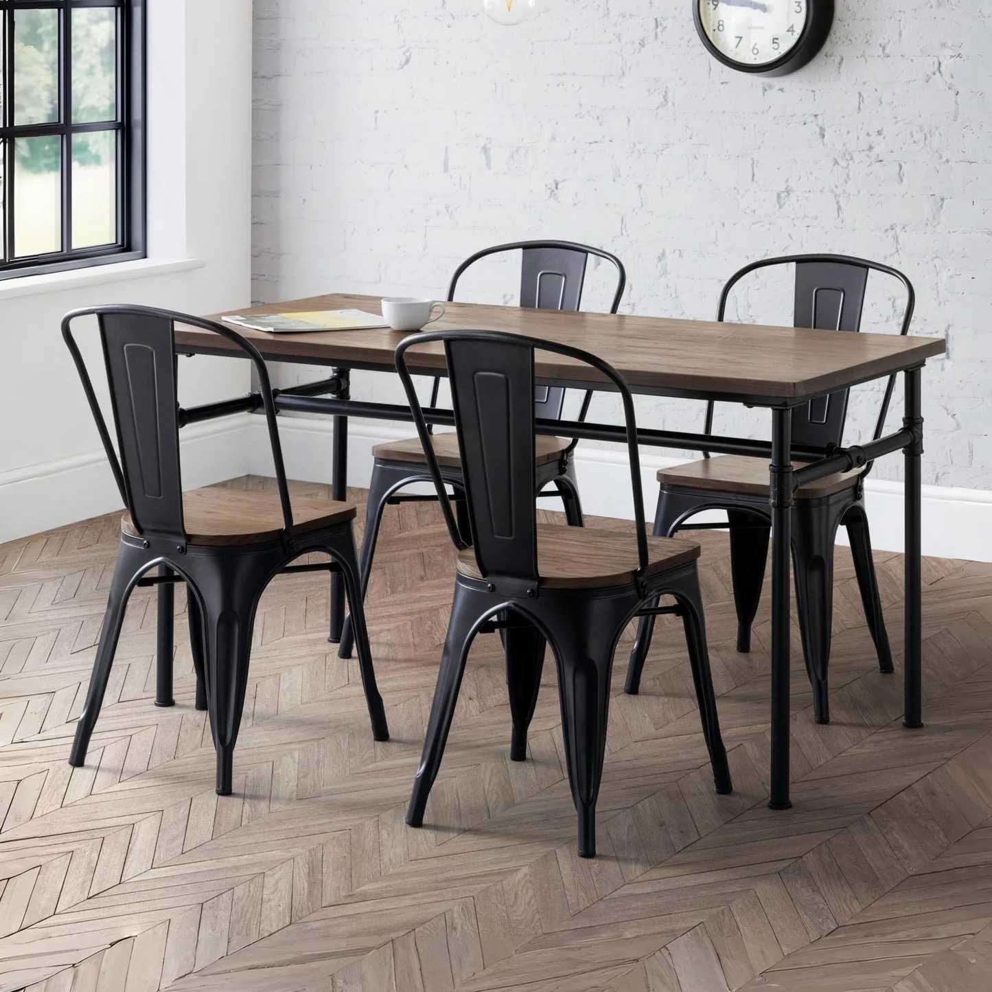 The Carnegie Dining Table offers an industrial design, perfect for your kitchen, dining room and other interior space. The use of solid Elm wood in a mocha finish adds a distinctive statement look, whilst beautifully showing off the wood grain. Finished with powder-coated steel legs in a pipework style, the Carnegie is sure to be an eye-catching piece in any room.