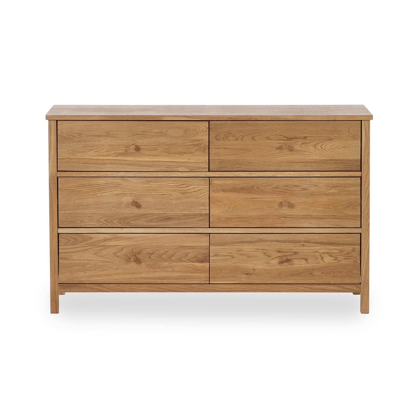 Enhance your bedroom storage with the Coxmoor 6 Drawer Chest in Oak. Featuring six spacious drawers with elegant knob handles, it offers plenty of room for clothing, bedding, and other essentials. The sleek oak finish brings a touch of sophistication to your space, while the design ensures both practicality and style. Perfect for adding extra storage to your bedroom without compromising on elegance, this chest is built to last with its durable oak finish. A timeless combination of form and function, it’s a versatile addition to any home and easy to assemble.