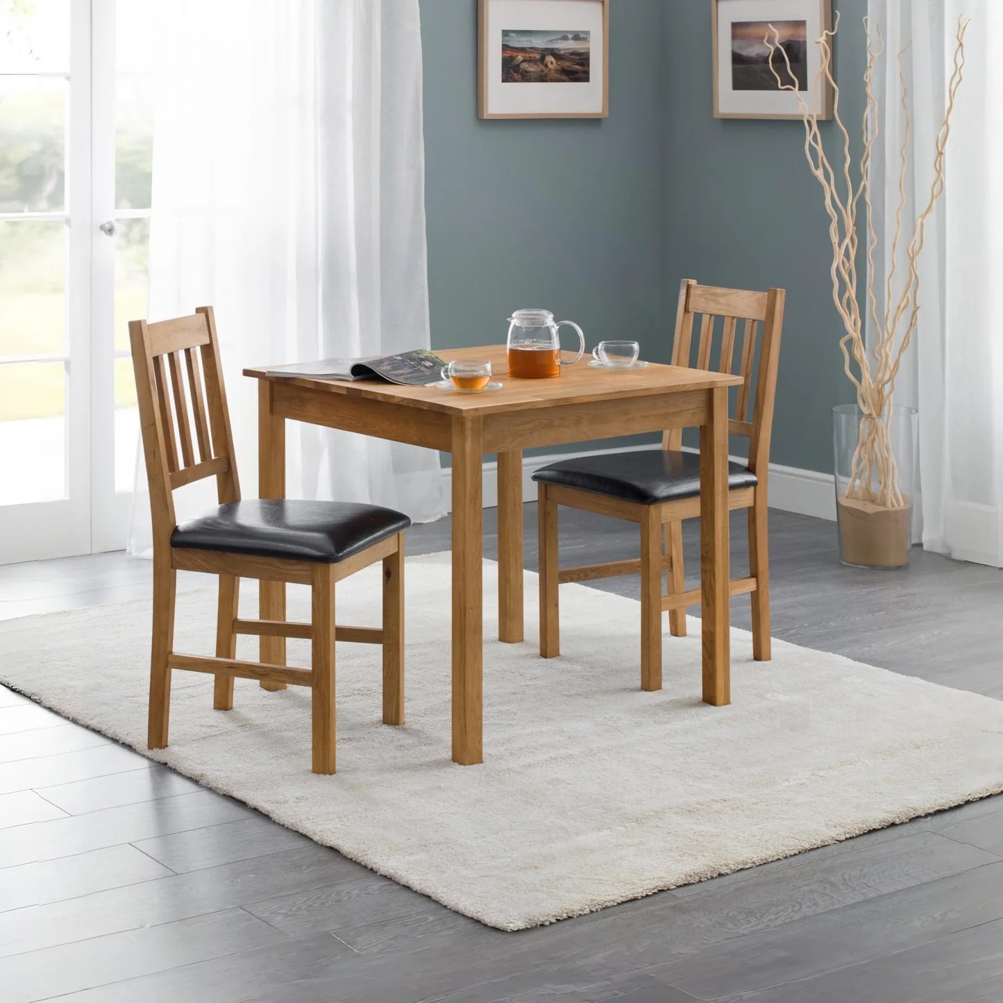 This compact solid oak dining table in a rich oiled finish, is suitable for small kitchen diners. This classic, timeless design adds extra room for you to enjoy your daily meals.