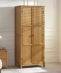 Enhance your bedroom with the Coxmoor Wardrobe in oak, a sophisticated storage solution that combines style and practicality. Crafted with clean lines and a classic oak finish, this wardrobe offers ample hanging space for clothes, along with a convenient shelf for folded items or accessories. The sleek design, complemented by elegant knob handles, allows it to fit seamlessly into any bedroom, while the natural wood grain adds warmth and character to your space. Simple assembly makes it easy to set up.