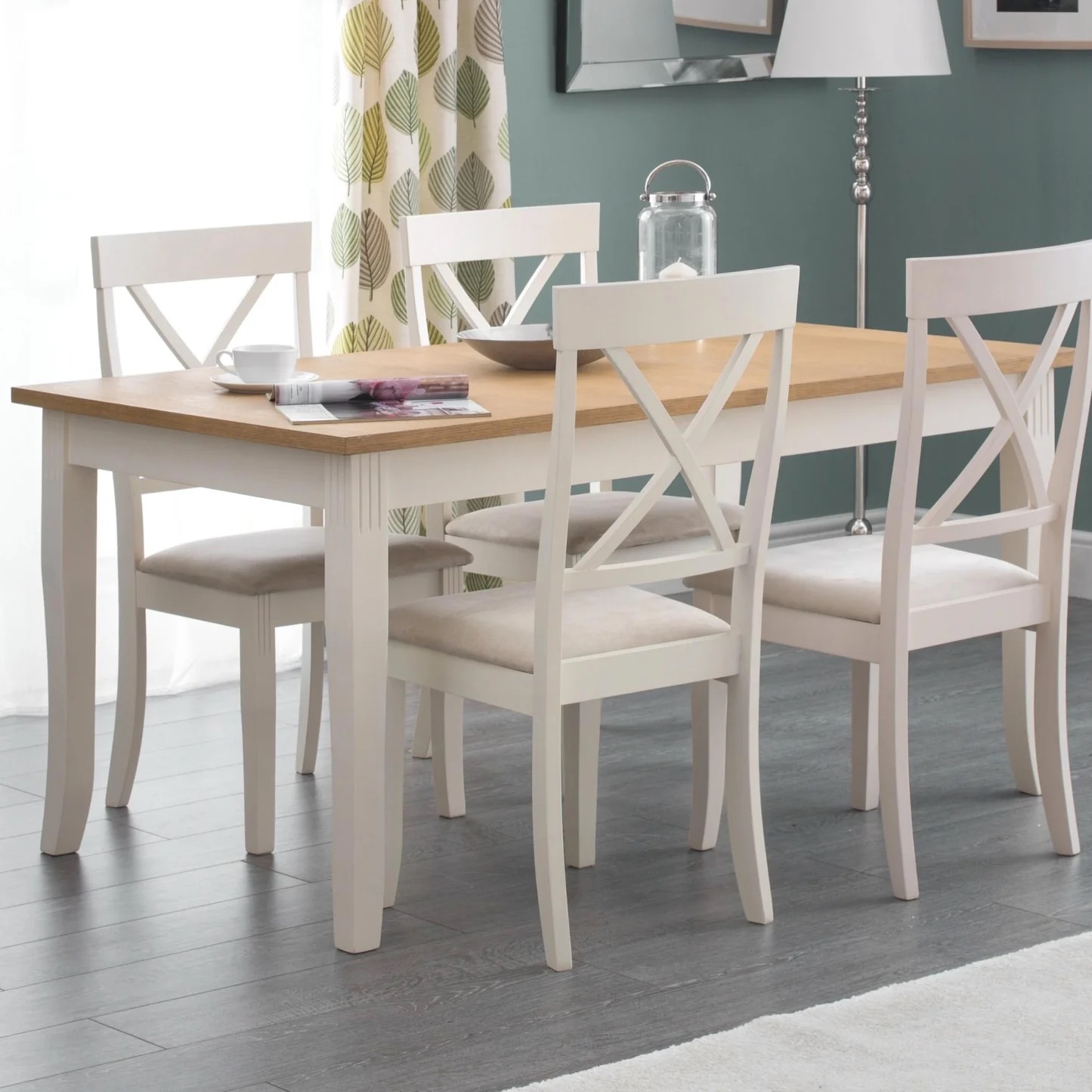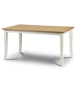 Crafted from solid rubberwood and a real oiled oak veneer 25mm top, this is the ideal dining table to please your dinner guests. In an elegant ivory lacquered finish, suitable for any dining room decor.