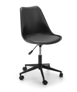 The super sleek Erika Office Chair offers a contemporary, futuristic look perfect for home and office use with its adjustable seat height. Offering the choice of a black, grey or white finish, this eye-catching chair offers an easy to clean PU cushion upon a polyethene seat. Easily move around at your convenience with a single chrome plated stem upon 5 castors.