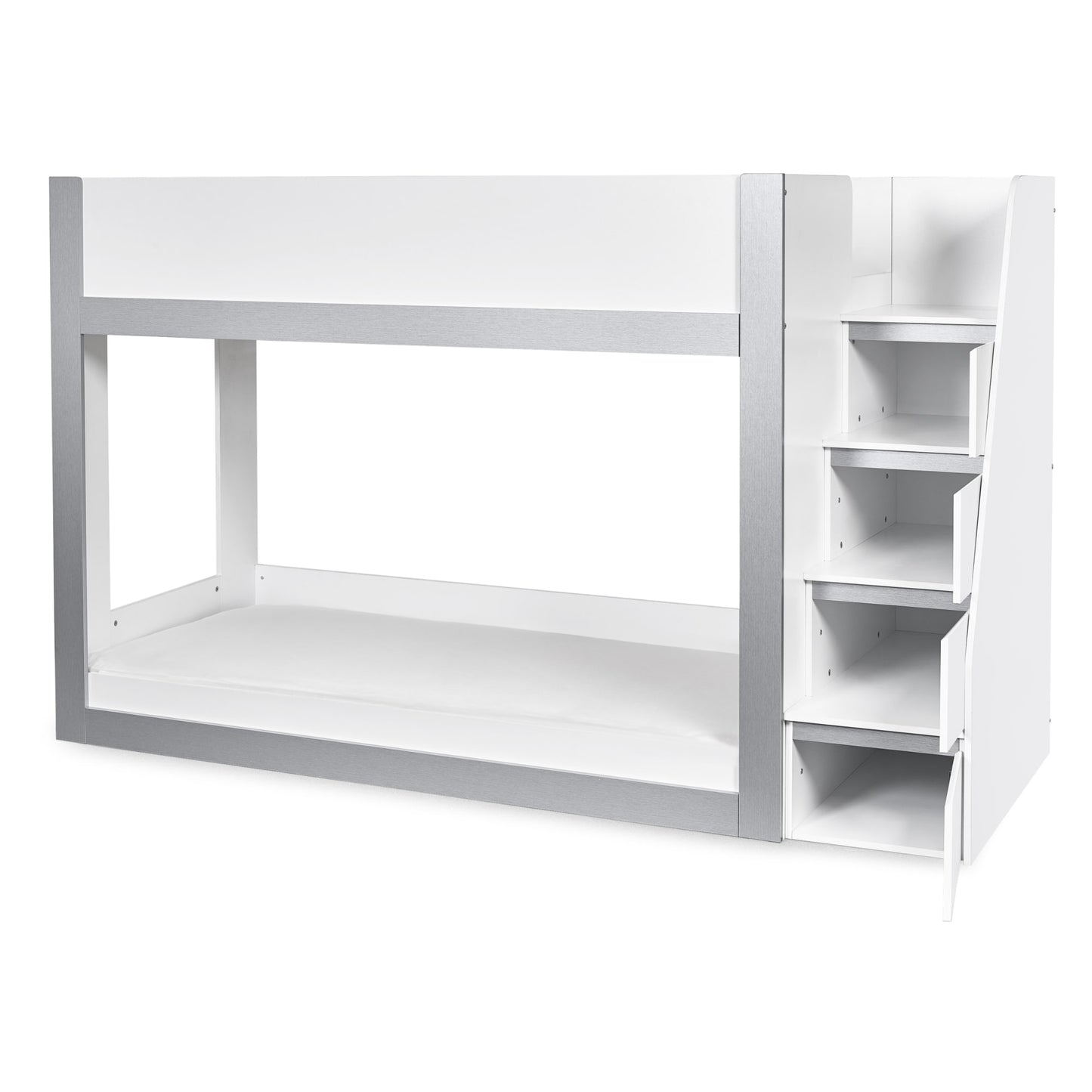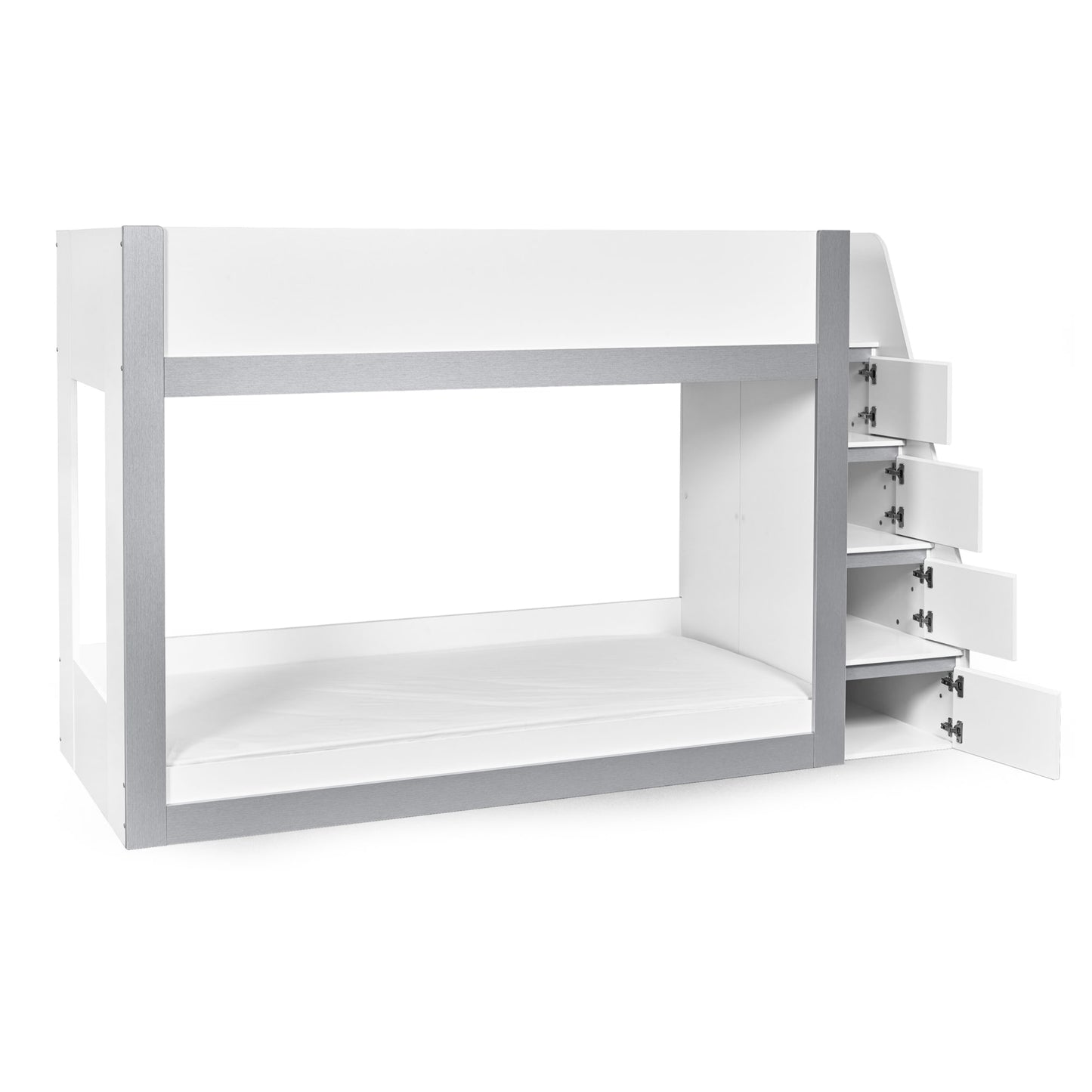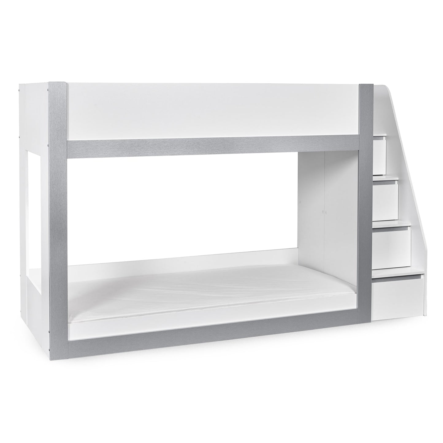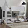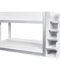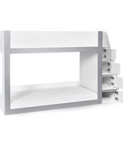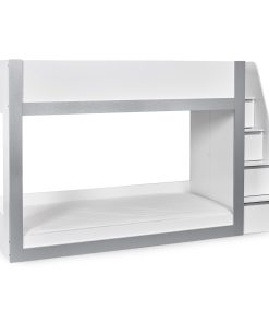 Transform your child’s bedroom with this extraordinary bunk bed, designed to bring modern style and practical storage into their space. With a sleek white and silver finish, this contemporary single bunk bed offers a clean, fresh look that complements any kids’ room. The fixed ladder provides safe access to the top bunk and features integrated storage compartments, ideal for keeping books, toys or daily essentials neatly organised. Crafted from strong, durable wood, this bunkbed is a smart, space-saving choice for shared bedrooms or sleepovers. Mattresses sold separately.