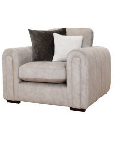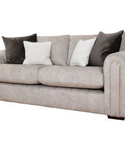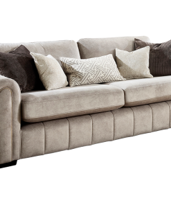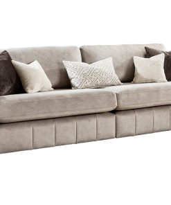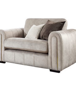 The Glamour collection epitomises everything Glamourous, elegant lines, plush sumptuous body fabric, sophisticated accent cushions all finished off with rich gold piping details framing the front arm facing. The model has striking features, as well as the gold piping on the arms. The front border is quilted offering drama and comfort, it’s generous proportions allowing you to chill out in style. The Glamour has an Art deco influence which is evident in the dome design shape of the arms and layered facing,  the low wooden foot is this models finishing touch.