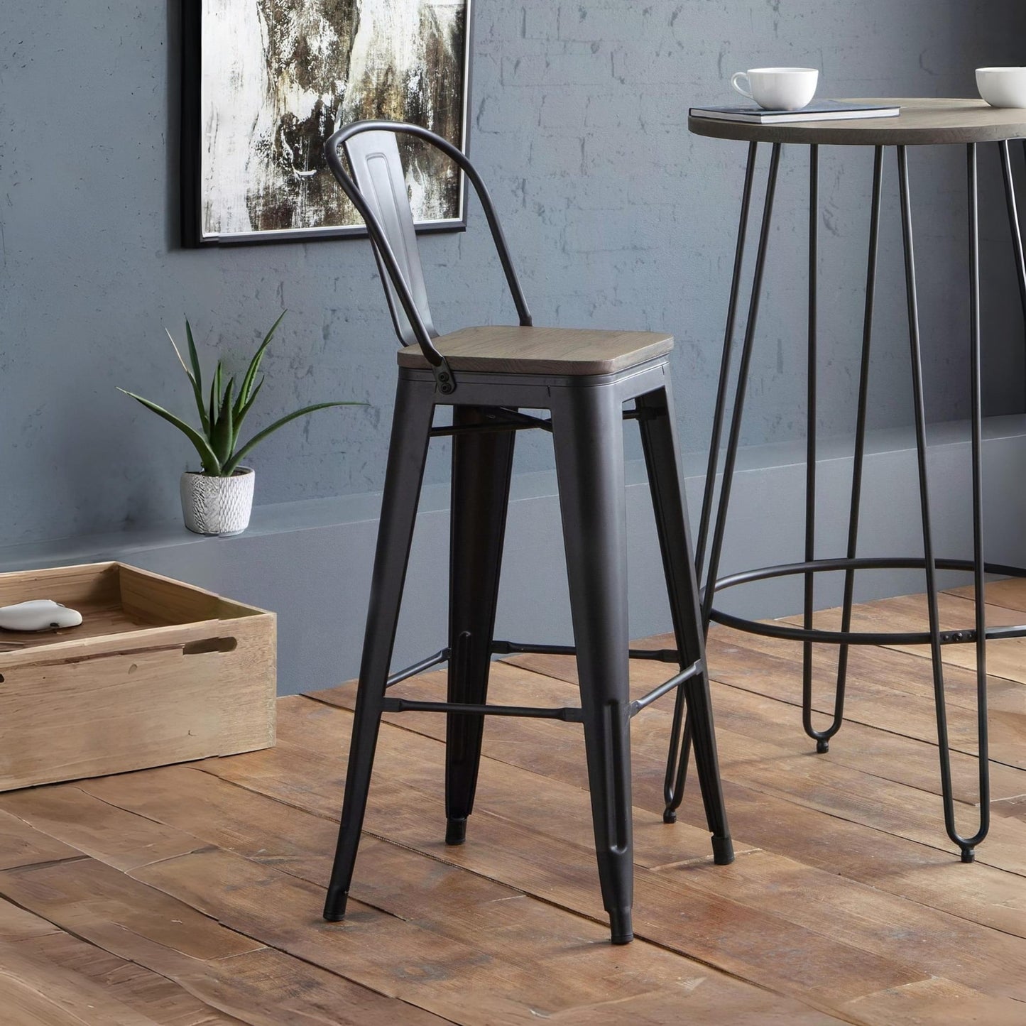 Crafted from solid Elm wood and satin black powder coated steel, The Grafton Bar Stool is perfect for any bar or high table. Featuring an open curved back for extra comfort, the Grafton Bar Stool will add an industrial touch to any room. Perfect match for the Grafton Bar Table.