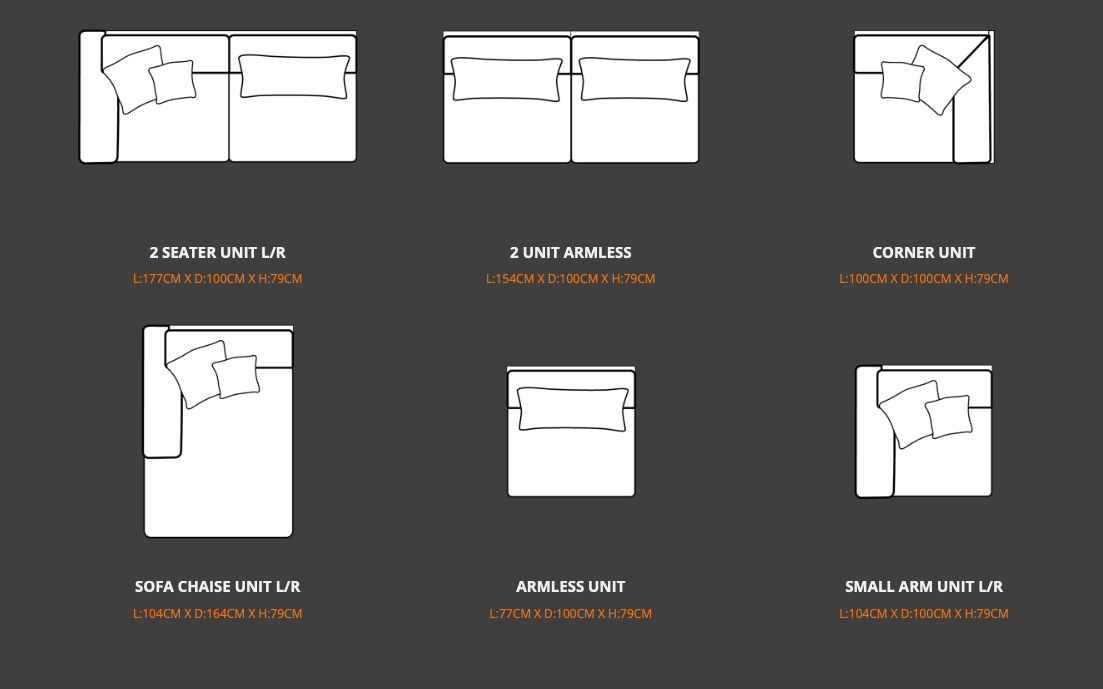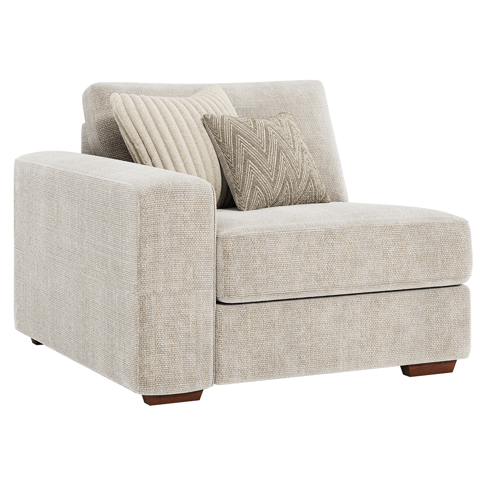A contemporary modular sofa made for relaxation and flexibility, with it’s high back and generous shape appeal, offering deep cosy seats and plenty of support and space to stretch out in comfort. The Henley has a modern on-trend design which offers you the chance to design your own seating space in your living room. The beautiful soft textured chenille fabric is complemented by a mix of cosy cord and chevron patterned scatters.