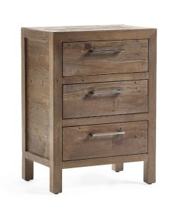 Heritage is constructed using reclaimed and recycled wood – making each piece unique and distinct. The Heritage 3 Drawer Bedside has a distressed finish and is combined with industrial style metal handles that complete the look. The original imperfections are what make these pieces so unique and provide a distinct character in your bedroom space. With three spacious drawers, this bedside not only looks good, but provides the storage space you need. See the wide ranging Heritage Collection for the perfect matching pieces.