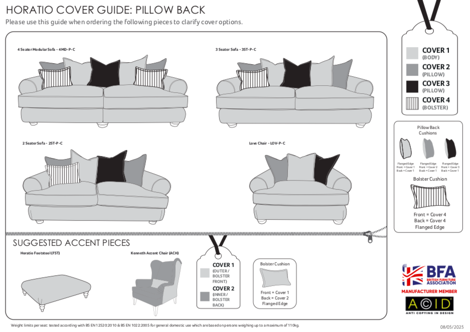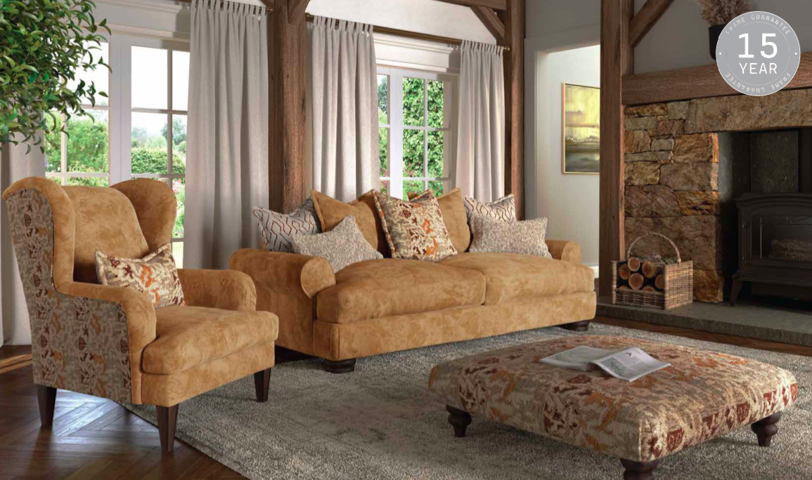 The Horatio fabric sofa collection features a modern twist on the classical Chesterfield shape. Available as a pillow back or standard back with beautiful caramel or grey patterned elements, the Horatio offers a majestic appearance to suit many living interiors.