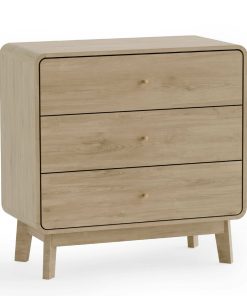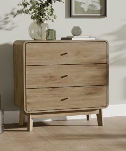 The Ingrid 3 Drawer Chest effortlessly combines style and functionality, bringing a sense of refined simplicity to your space. With its natural wood-effect finish, it adds a warm, organic touch, while the gently curved corners complement its sturdy design. Gold-finished handles provide a hint of luxury, and the three spacious drawers offer ample storage for clothing and essentials. This versatile chest is ideal for both small and large bedrooms, with simple assembly for your convenience.