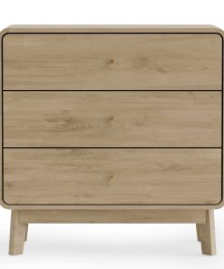 The Ingrid 3 Drawer Chest effortlessly combines style and functionality, bringing a sense of refined simplicity to your space. With its natural wood-effect finish, it adds a warm, organic touch, while the gently curved corners complement its sturdy design. Gold-finished handles provide a hint of luxury, and the three spacious drawers offer ample storage for clothing and essentials. This versatile chest is ideal for both small and large bedrooms, with simple assembly for your convenience.