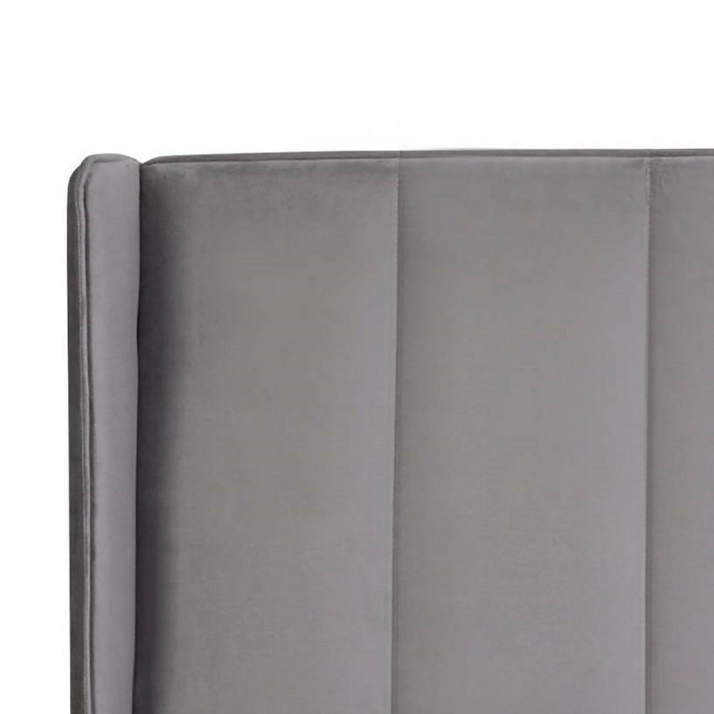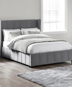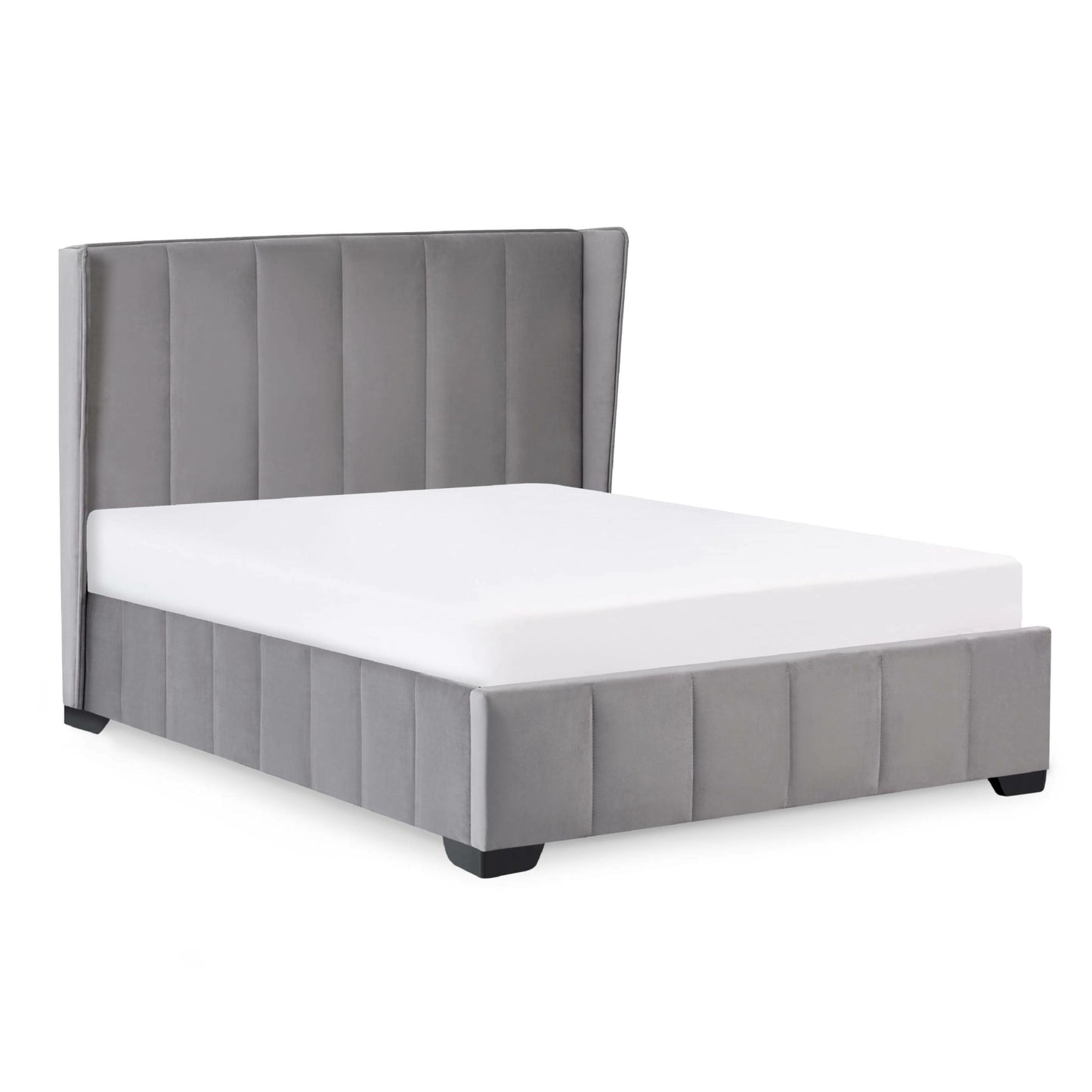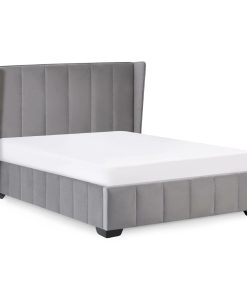 Combining timeless style with everyday practicality, this winged bed is upholstered in luxurious grey velvet for a soft and elegant finish. The tall winged headboard adds a refined focal point while offering comfortable support for evening reading or relaxation. Its low footboard and clean frame maintain a sleek, open feel that is ideal for creating a calm and uncluttered bedroom setting. Thoughtfully crafted from sustainable materials, it brings a mindful approach to modern interiors. With its smooth lines and understated profile, this bed blends comfort and subtle sophistication with ease. Assembly required. Mattress sold separately.