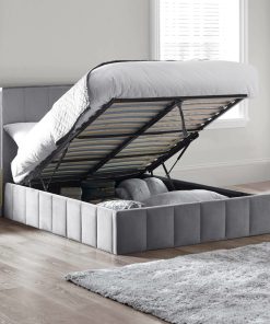 Classic design meets sustainable living in this stylish winged ottoman bed, upholstered in grey velvet for a rich, soft finish. The tall headboard with winged sides adds structure and presence to your space while offering a comfortable surface to lean back against. Built with an ottoman mechanism, the frame lifts easily to reveal generous underbed storage, perfect for blankets, clothing, or other home essentials. Made with sustainable materials, it balances elegant looks with more conscious construction. Assembly required. Mattress sold separately.