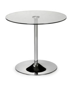 This Kudos Glass Pedestal Table has a contemporary chrome and glass finish that is perfect for your dining room or as a modern kitchen diner.