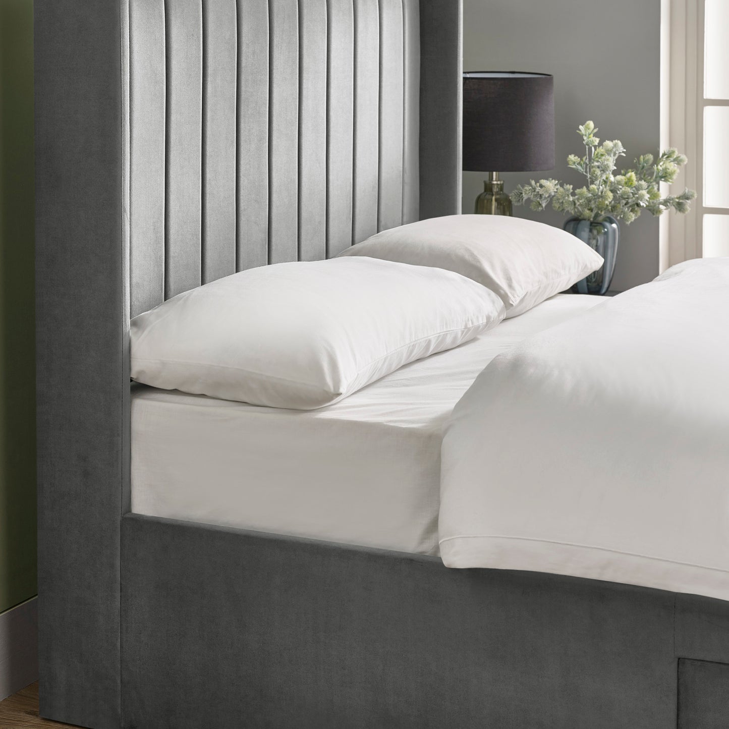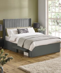Create a bedroom that feels calm, considered, and unmistakably stylish. This beautifully upholstered grey bed frame pairs clean modern lines with plush comfort, making it the perfect centrepiece for a contemporary sleep space. The vertically panelled headboard adds subtle texture and height, while the rich grey fabric brings warmth and depth inspired by nature. Designed to feel as good as it looks, this bed transforms everyday rest into a refined experience