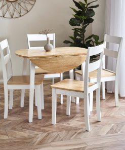 With a timeless and classic design, the Linwood Dining Chair offers a beautifully traditional open ladder backrest, finished in white with a natural light oak effect seat.