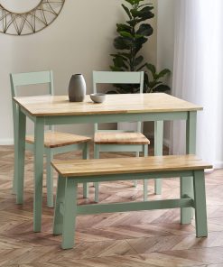 Add a charming touch to your dining space with a set of two sage green and natural oak effect dining seats. Featuring a timeless slatted back and gently curved top rail, they combine comfort and classic style, perfect for everyday meals or special gatherings. The oak-effect seat offers a warm contrast against the soft sage green frame, creating a cosy and inviting look that complements a variety of interior styles.