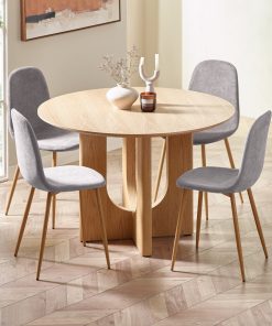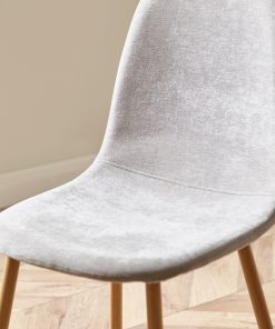 Bring effortless style and comfort to your dining space with this set of four dining chairs, upholstered in soft beige linen-tone chenille fabric. The subtle neutral shade brings a calming, elegant look that brightens any interior. The tactile chenille and sleek, curved seat offer a perfect mix of comfort and sophistication, while slim light wood-effect legs add a warm, organic touch, ideal for modern, Scandinavian, or minimalist settings. Minimal assembly required.