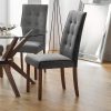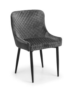 Combining a classic style with a modern twist, the Luxe dining chair is beautifully upholstered in a grey velvet fabric with luxurious quilted detailing. Featuring contemporary black painted legs, this dining chair adds a touch of elegance to any dining area.