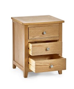 The Mallory 3 Drawer Bedside, crafted from solid oak and oak veneers, features 3 spacious drawers perfect for storing those items needed at hands reach from your bed. The simple, yet stylish design with beautiful silver knobs perfectly complements any bedroom decor.
