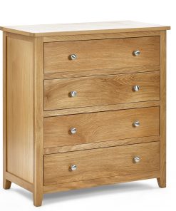 Crafted from solid oak and oak veneers, the Mallory 4 Drawer Chest features 4 generously sizes drawers ideal for storing clothing. The simple, yet stylish design with beautiful silver knobs perfectly complements any bedroom decor.