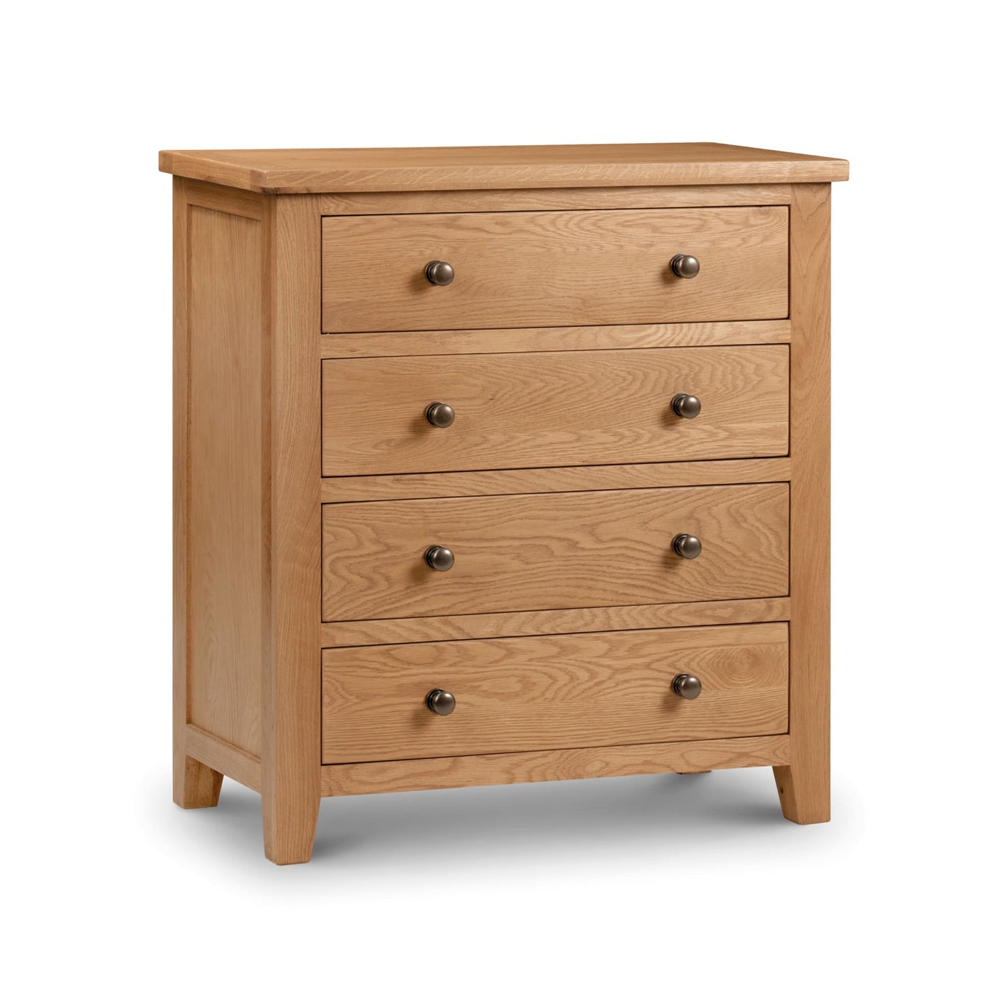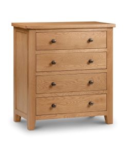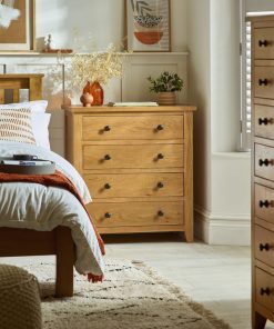 Marlborough is a bedroom range with a classic and timeless design, beautifully constructed using the finest White Oak and Oak Veneers and which complements both traditional and contemporary decor beautifully. The Marlborough Oak 4 Drawer Chest has a 30mm chunky top, clean lines and a sumptuous waxed finish. Drawers are constructed with Dovetail Joints.