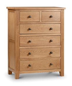 Marlborough is a bedroom range with a classic and timeless design, beautifully constructed using the finest White Oak and Oak Veneers and which complements both traditional and contemporary decor beautifully. The Marlborough Oak 4+2 Drawer Chest has a 30mm chunky top, clean lines and a sumptuous waxed finish. Drawers are constructed with Dovetail Joints.