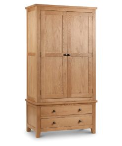 Marlborough is a bedroom range with a classic and timeless design, beautifully constructed using the finest White Oak and Oak Veneers and which complements both traditional and contemporary decor beautifully. The Marlborough Combination Wardrobe has two handy storage drawers as well as ample hanging space and has a 30mm chunky top, panelled doors and a sumptuous waxed finish.