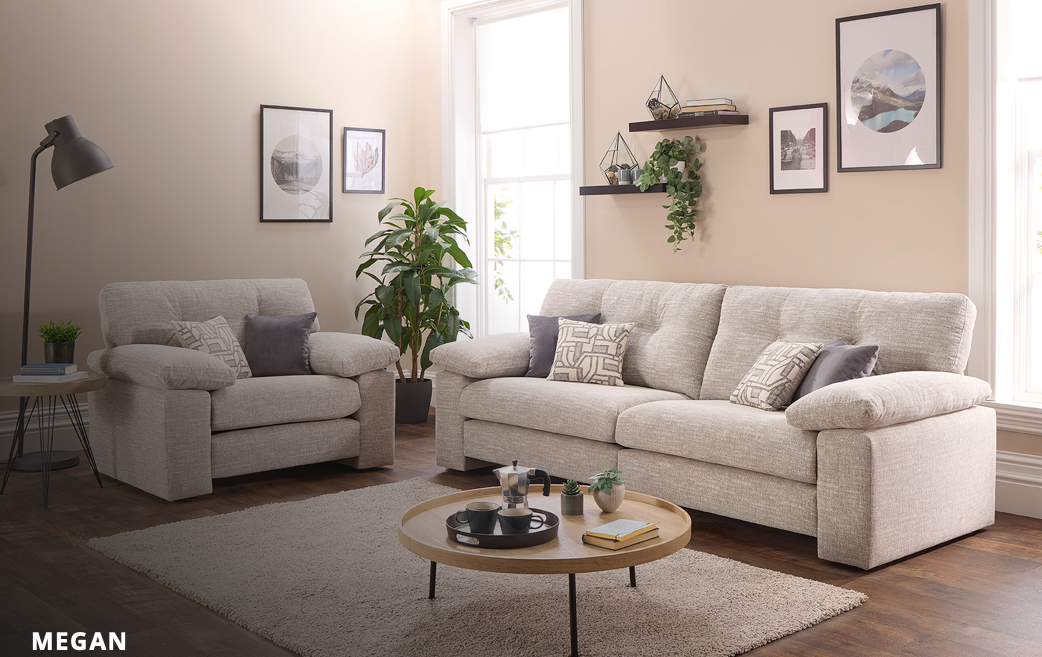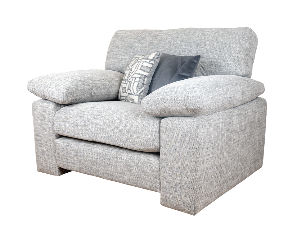 Contemporary design made for relaxation, with it’s deep cosy seats and soft arm bolsters offering plenty off space to stretch out in comfort. The Megan’s on-trend design of floating seating area nestled between two strong cradling arms. The beautiful soft chenille fabric is complimented by luxurious velvet and modern geometric design scatter cushions which will make a striking statement in any style of home.