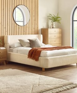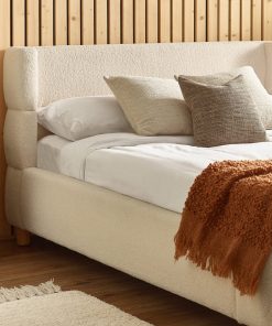 Create a warm and welcoming retreat with this upholstered bed, wrapped in soft-touch cream bouclé fabric for a look that’s both stylish and serene. The curved, padded headboard and fully upholstered bed frame offer cushioned support and a refined silhouette. With its subtle wooden legs and cosy fabric finish, this fabric bed brings both texture and comfort to your bedroom. Minimal assembly required. Mattress sold separately.