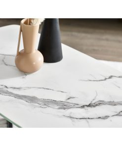Inspired by beautiful Italian marble, the Olympus collection delivers character and glamour to your space. With statement, contrasting black bases – this look is destined for any contemporary home. The collection includes a dining table, lamp table and coffee table in either option of white or black marble.