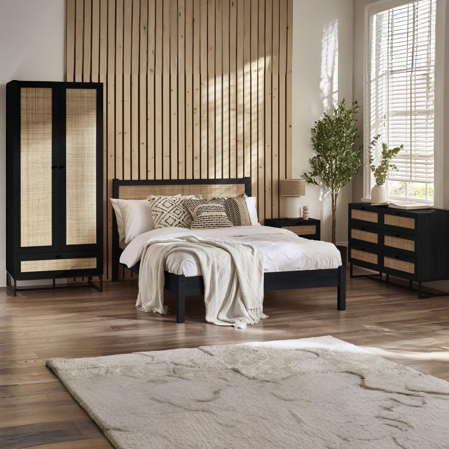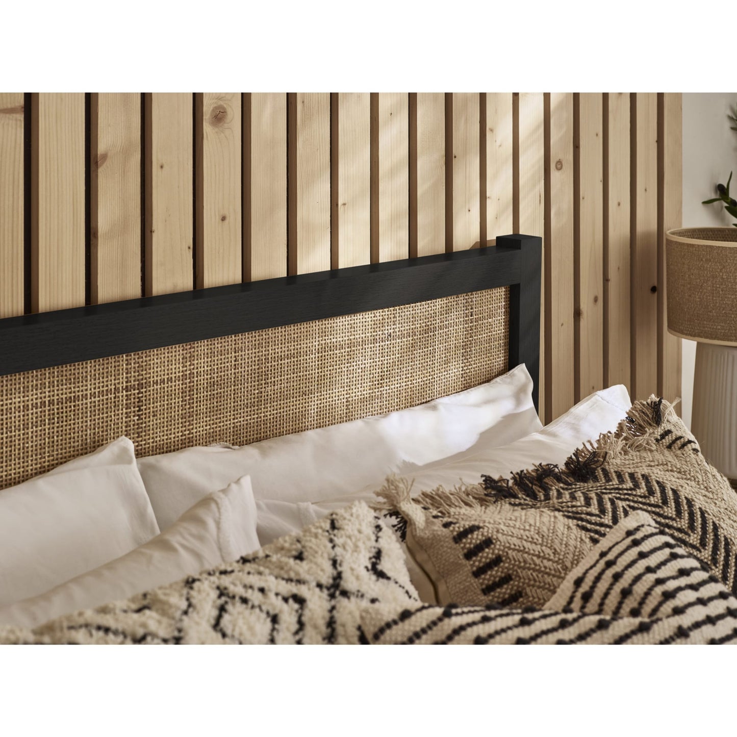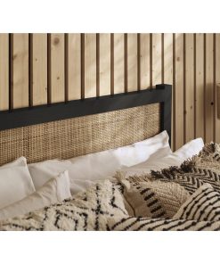 Step into a realm of unparalleled style and comfort with the Padstow Rattan Bed in Black. This exquisite piece features an intricate weaved rattan headboard that effortlessly brings a mix of modern elegance and retro charm to your space. The bohemian-inspired design combines timeless appeal with a touch of contemporary flair, making it a versatile addition to any decor. Built for durability, this bed provides sturdy support for a restful night’s sleep, while the sophisticated black finish adds a bold and chic touch, enhancing the ambiance of any room. Mattress sold separately.