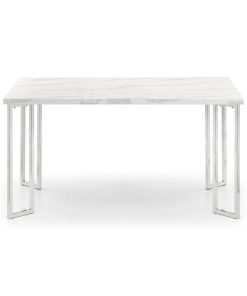 The Positano is crafted from a sleek marble effect top on a stainless steel frame. Featuring individual angled framed legs which give off a futuristic feel. It has a timeless Italian design that fits well with a wide range of decorative styles.