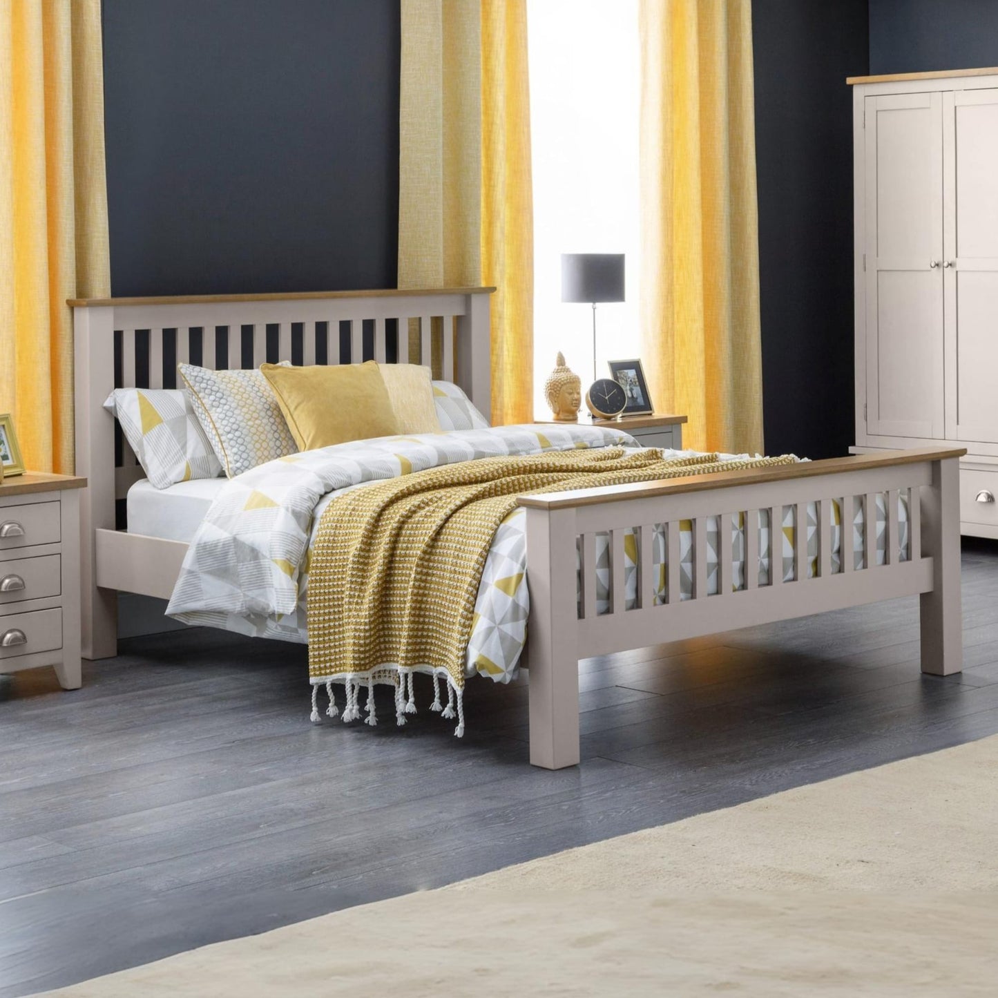 An imposing shaker style bed frame finished in a elephant grey lacquer, creating a timeless, elegant design suitable for a wide range of décor. Constructed from white oak and oak veneers, this lacquered bedroom range brings a modern twist on a traditional construction.