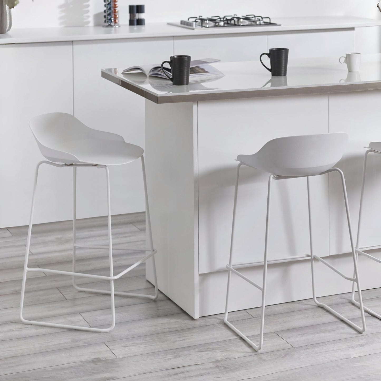 Upgrade your seating experience with the Rocco Stool a sleek and contemporary design that effortlessly combines style and functionality. The flowing metal legs and an elegant white curved seat with a low back create a chic and contemporary look, perfect for modern kitchens, home bars, and dining rooms.