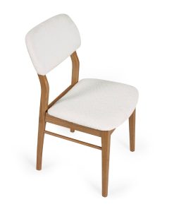 Bring a sense of warmth and understated elegance to your dining space with these beautifully upholstered dining chairs. The soft white boucle offers a rich, tactile finish that feels both luxurious and inviting, while the gently curved seat and backrest provide lasting comfort and support. Set on sturdy warm oak-effect legs, they offer a seamless blend of comfort and style, making them a refined addition to any setting as dining room chairs.