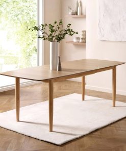 Sleek and versatile, this extending dining table blends natural warmth with modern simplicity. Finished in a smooth oak effect, its slender tapered legs and softly rounded edges bring a light, effortless feel to your dining space.