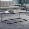 A cool, modern coffee table designed to add a contemporary touch to any home or work place. Its simple clean lines, delineated by a subtle, black coated metal frame are complemented perfectly by a warm, walnut foil, to create a very stylish and sleek product.