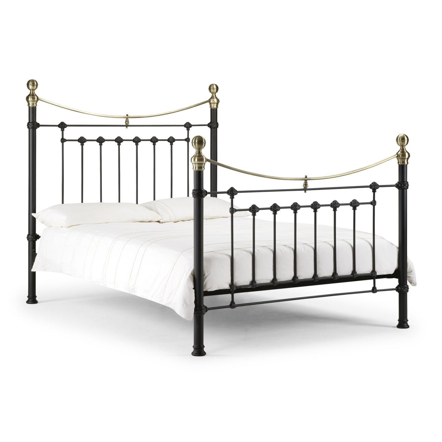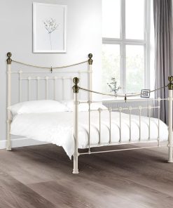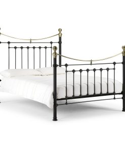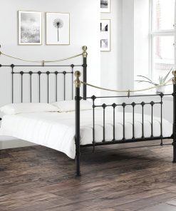 This is a traditional, Victorian inspired bedstead with attractive brass embellishments in a powder coated steel satin black finish. The Victoria is an imposing bed with a striking high headboard and matching footboard, whose timeless style complements a wide range of interior styles. A sprung slatted base ensures a comfortable night’s sleep and prolonged mattress life.