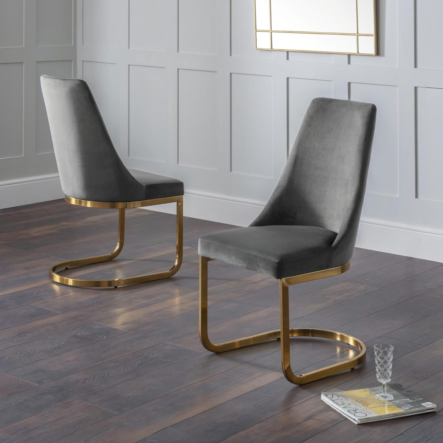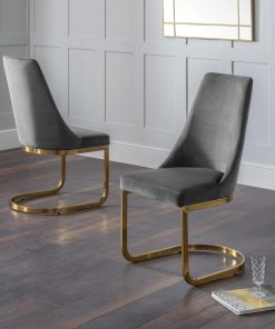 The Vittoria Cantilever chair brings sophistication and class to your home. With a golden U-shaped base and elegant velvet upholstery – this chair provides a classic touch to any dining area. The solid metal base adds great stability whilst the high backrests are supportive and comfortable.